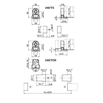 Komponenten für Leuchtstofflampen | Lampenfassungen | Stab - Leuchtstofflampen | G13 ( T8 + T12 ) | Durchsteckfassungen | 249/TS | 249/TCR | 249/TS-SN | 249/TCR-SN