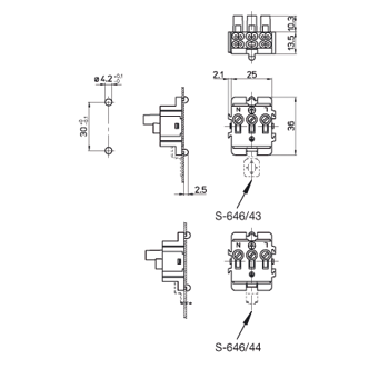 Verbindungsklemmen | Ohne Sicherungshalter | 3 - polig | 646/A | 646-F/A